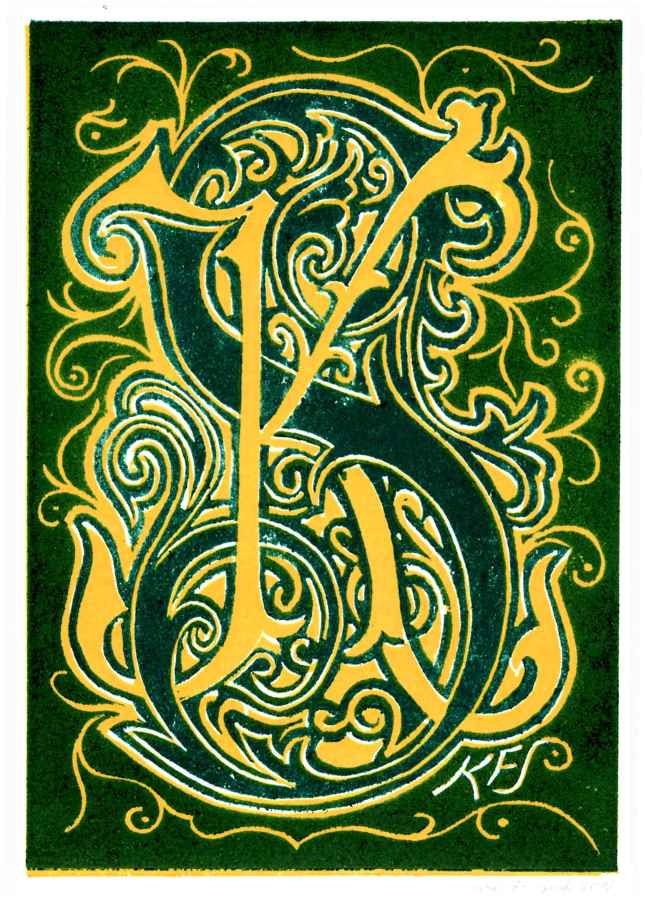 Stock, Karl F.: Monogramm "KS - SK": [Farblinolschnitt] / Karl F. Stock. - 2002-09-08. - [St. Ruprecht a. d. Raab / Wolfgruben], [2002]. - 187 x 130 mm. (X3/2).